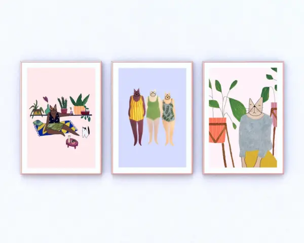 Cat Plant Wall Art - 3 Piece Gallery Set