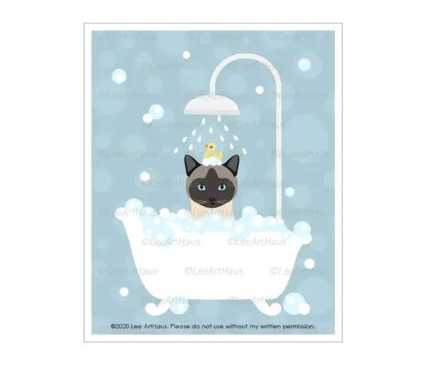 724D Cat Art Prints Siamese Cat In Bubble Bath Wall Art Cat Wall Art Cat Lover Gift Ideas Kitten Print Cat Prints Siamese Cats