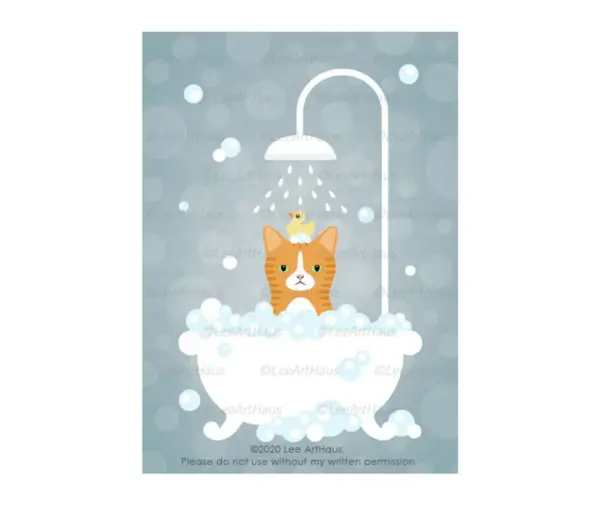 81G 5 Grumpy Orange Cat In Bathtub Wall Art Grumpy Orange Tabby Cat Decor Cat Bath Signs Cat Gifts Orange Cat Artwork Cat Gift