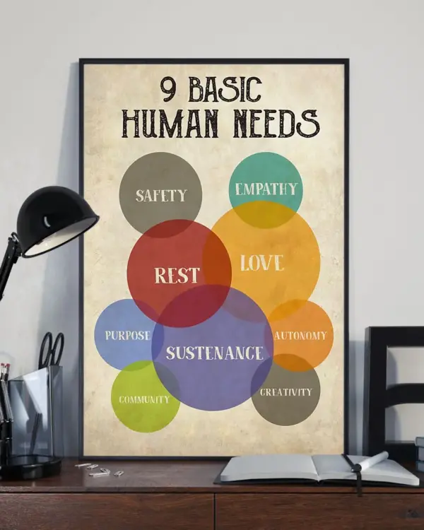 9 Basic Human Needs Empathy Safety Love Rest Purpose Poster