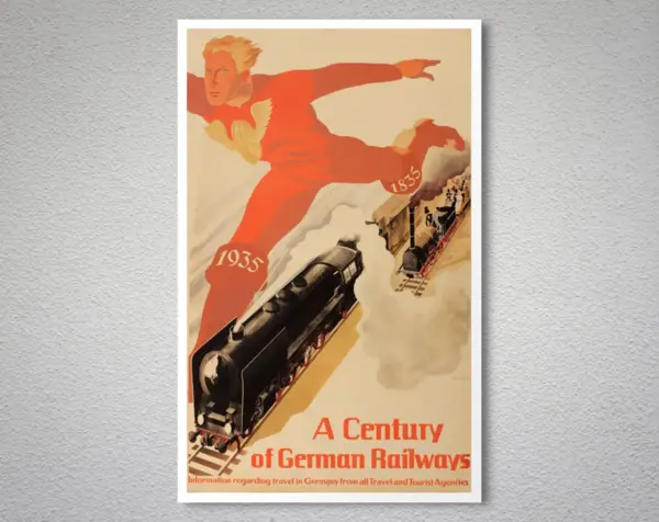 Vintage German Railway Poster Print - Canvas, Sticker, Gift
