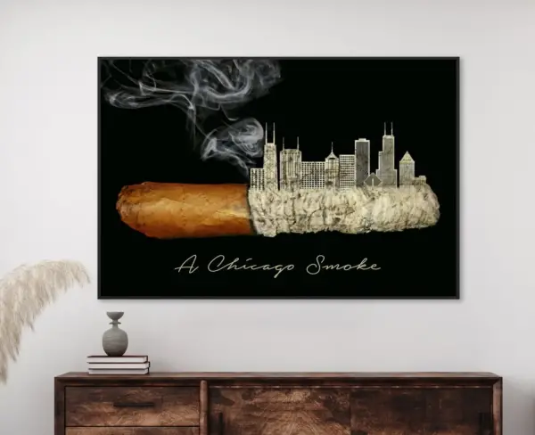 A Chicago Smoke Poster Chicago Travel Poster Chicago Poster Chicago Decor Chicago Gifts Cigar Smoker Poster Cigar Smoking Print