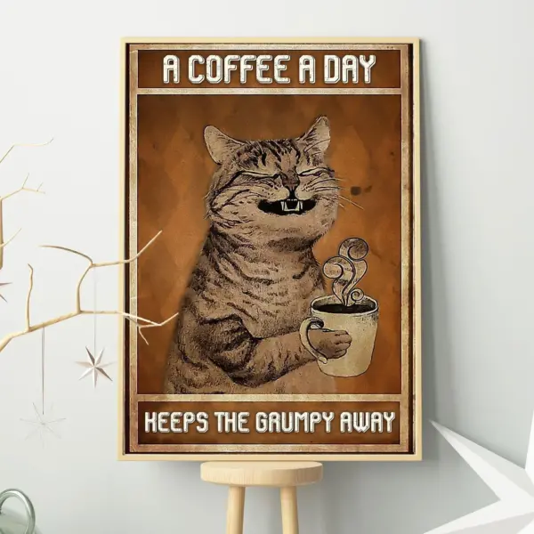 A Coffee A Day Keep The Grumpy Away Cat Vertical Poster A Coffee A Day Keep The Grumpy Away Cat Vertical Art Print Cat Lovers Poster
