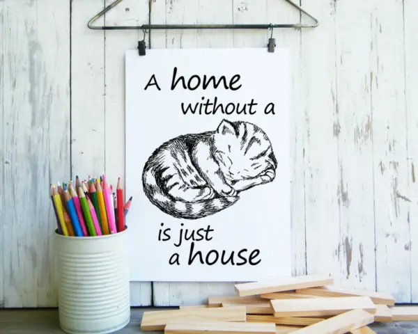 A Home Without A Cat Cat Decor Kitten Poster Quote Print Cat Lovers Gift Nursery Decor Cute Animals