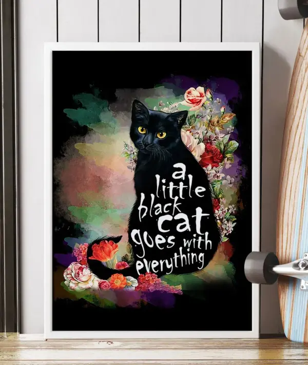 A Little Black Cat Goes With Everything Poster Gift For Cat Lover Funny Cat Art Print Black Cat Canvas Print Vintage Poster Cat Poster
