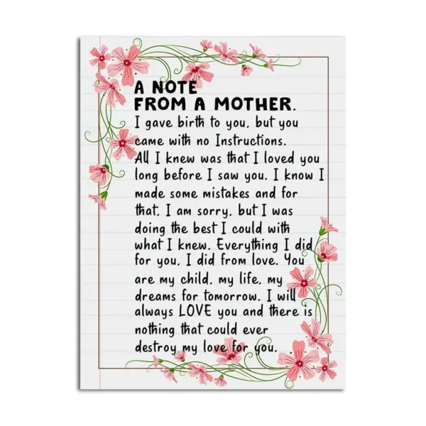 A Note From A Mother Poster To My Daughter Never Forget That I Love You Mom Gift For Daughter Daughter Gift Birthday Gift For Little Girl