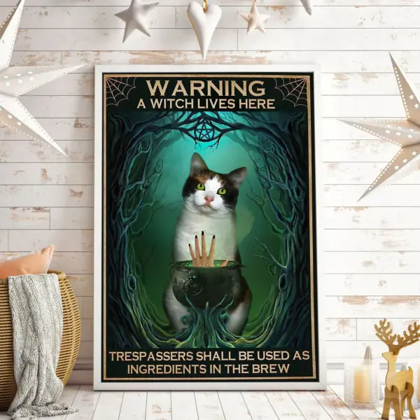 A Witch Lives Here Calico Cat Vertical Poster Cat Vertical Art Print Black Cat Art Wall Sewing Lovers Poster