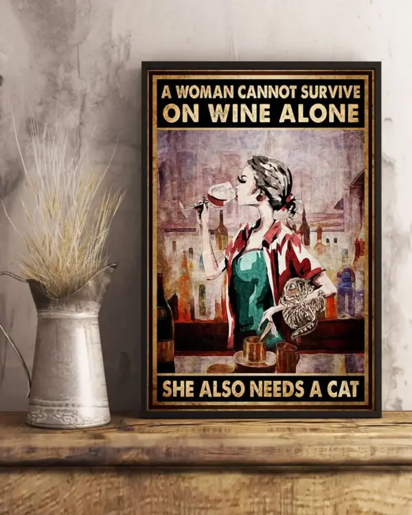 Cat & Wine Lover Poster - Funny Wall Decor