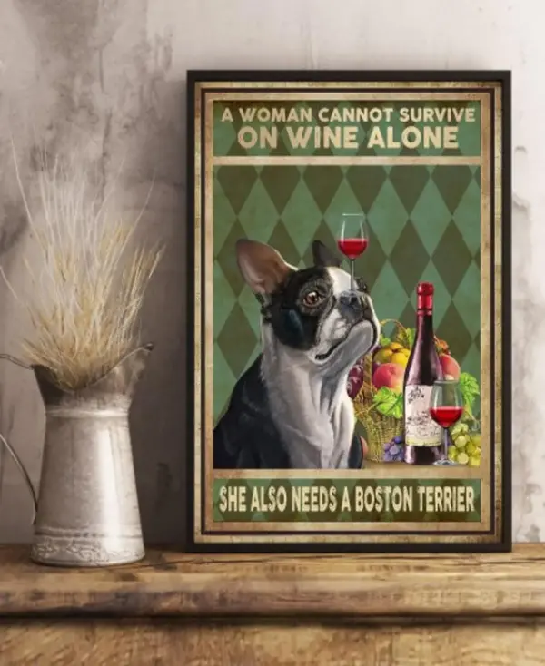 Boston Terrier & Wine Lover Poster - Funny Dog Art