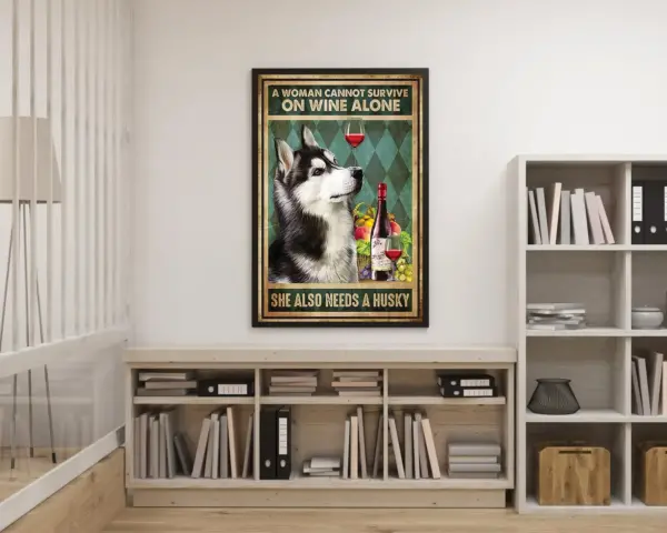 Husky Dog Lover Wine Poster - Funny Wall Decor Gift