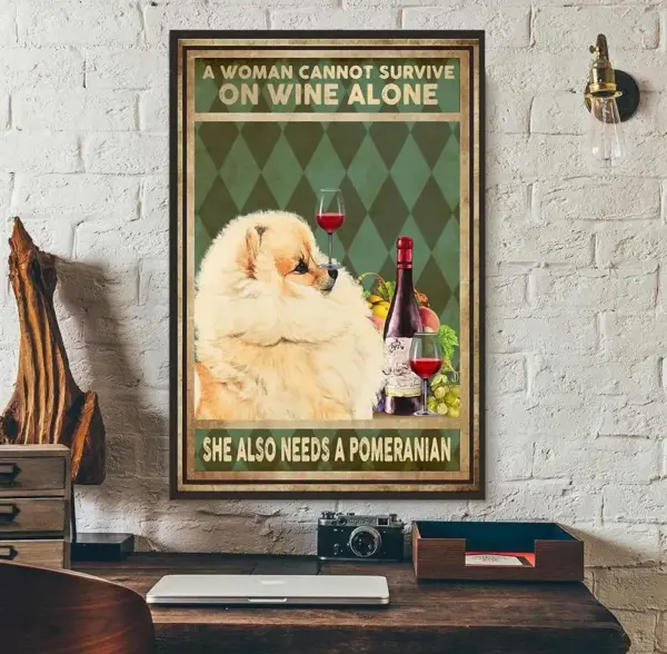 A Woman Cannot Survive On Wine Alone She Also Needs A Pomeranian Canvas