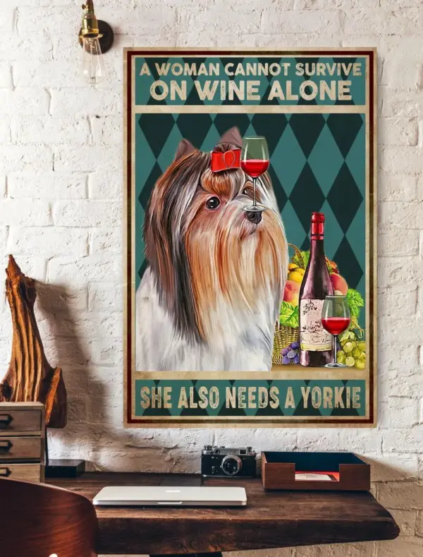 A Woman Cannot Survive On Wine Alone She Also Needs A Yorkie Vertical Print Poster