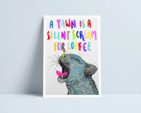 A Yawn Is A Silent Scream For Coffee By Niki Pilkington Motivational Quote Coffee Lover Print