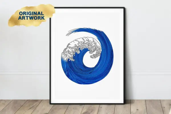 Abstract Big Blue Japanese Wave Minimalist Print Point Break Surfing Downloadable Poster Surf Ocean Lovers Modern Japan Gift Coastal Decor