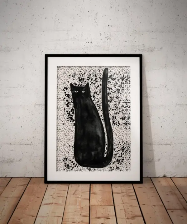 Abstract Black Cat Print Wall Art Poster Grumpy Cat Print Wall Decor Wall Art Cat Lover Gift Black Cat Portrait Abstract Black Cat Art Print