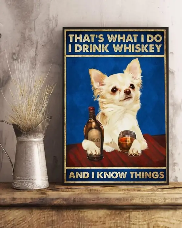 Adorable Dogs Thats What I Do I Drink Whiskey And I Know Things Poster