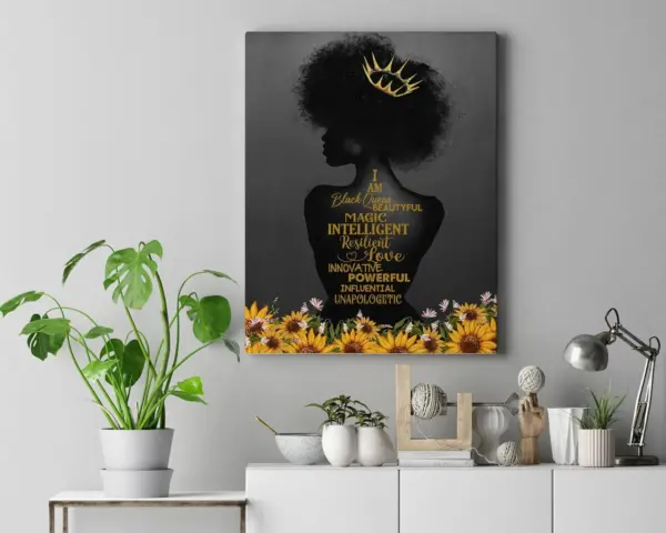 Black Queen Canvas Art - Afro Curly Hair Wall Decor