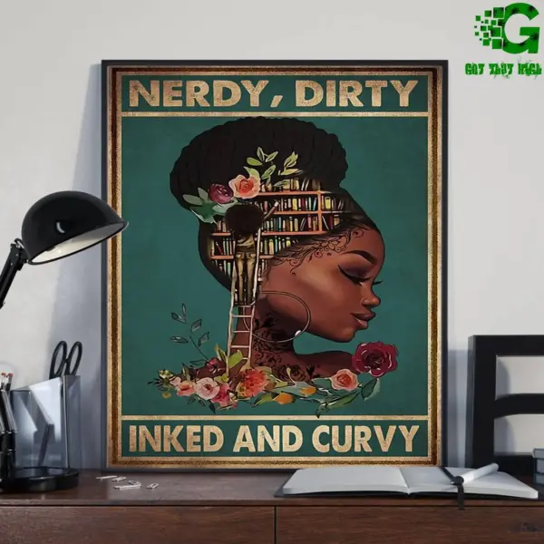 Afro Girl Nerdy Dirty Poster Nerdy Dirty Inked And Curvy Wall Art Living Home Decor Wall Decor Best Gift Ever