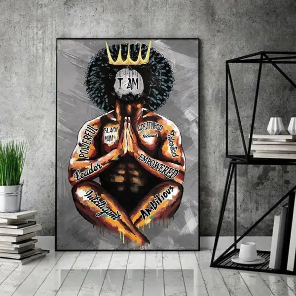 Afro King Praying Poster African American Men Portrait Poster Black Men Poster Afro King Portrait Poster Vintage Black Pride Poster Framed Matte Canvas