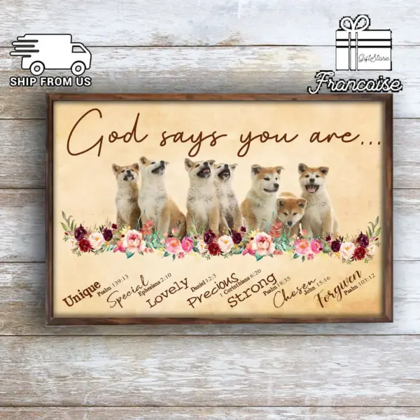 Akita Dog Lovers God Says You Are Unique Special Lovely Poster Wall Art Print Home Living Decor Poster