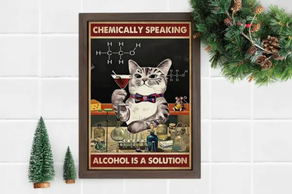 Alcohol Is A Solution Poster Cat Poster Print Wall Art Cat Lover Gift Wall Decoration Poster Hanging Poster Best Gift Ever