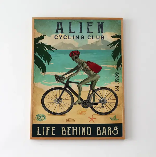 Alien Cycling Club Life Behind Bars Poster Alien Poster Ufo Wall Decor Ufo Alien Wall Art Space Home Decor Gift For Alien Lover