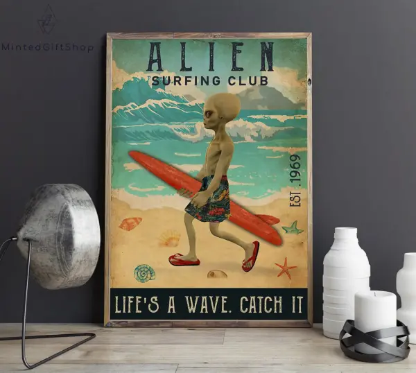 Alien Life S A Wave Catch It Poster Alien Surfing Club Poster Funny Alien Print Surfing Poster Alien Art
