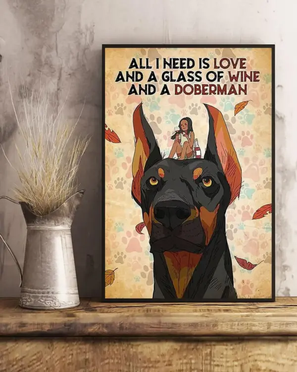 All I Need Is Love And A Glass Of Wine And A Doberman Poster