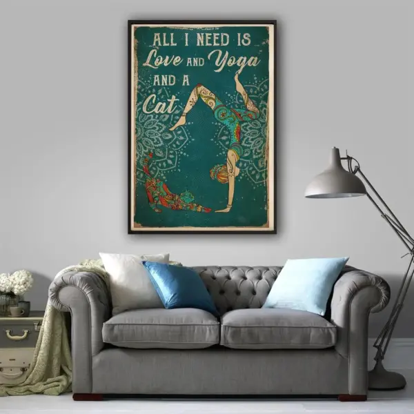 All I Need Is Love And Yoga And A Cat Yoga Poster Wall Art Print Home Living Decor Poster Cat Lover Poster Canvas Poster Cat And Yoga Art