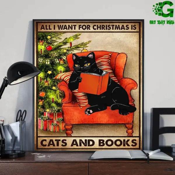 All I Want For Christmas Poster Wall Art Living Home Decor Wall Decor Best Gift Ever Cat Lovers Decoration 2