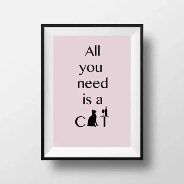 All You Need Is A Cat Print Cat Lover Gift Able Art Modern Large Wall Decor Pink Poster Instant Print Cat Poster