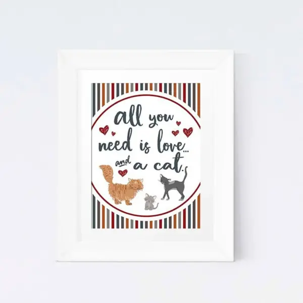 All You Need Is Love A Cat Printable Poster Cat Art Cat Lovers Printable Instant