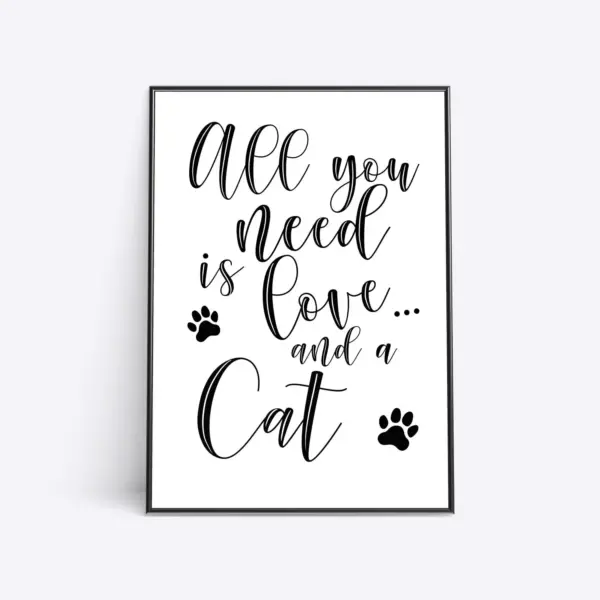All You Need Is Love And A Cat Cat Lover Gift Cat Sign Cat Presents Printable Poster Love Printable Art Secret Santa Gift
