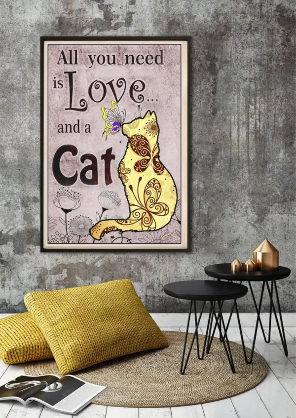 All You Need Is Love And A Cat Poster Cat Asthetic Poster Cat Lover Poster Peace Love Poster Boho Cat Poster Cat Slogan Poster