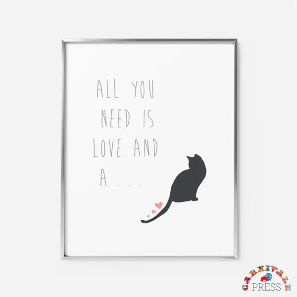 All You Need Is Love And A Cat Quote Art Print Makes A Great Gift For Cat Lovers
