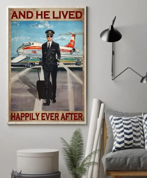 And He Lived Happily Ever After Flight Attendant Male Flight Attendant Poster Best Gifts Ever Signs For Home Wall Decoration 15