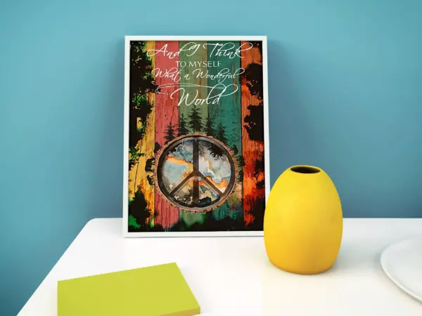 And I Think To Myself What A Wonderful World Poster Song Lyrics Poster Peace Sign Poster Into The Forest Vintage Poster Travel Art Framed Matte Canvas