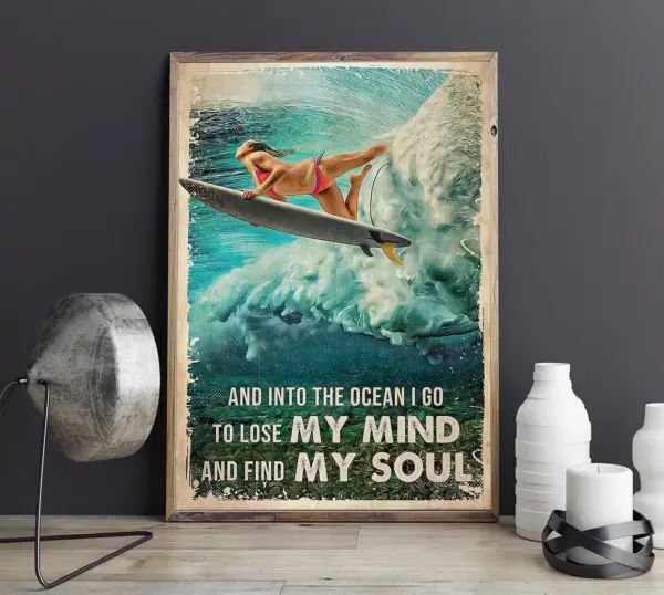 And Into The Ocean I Go To Lose Mind And Find My Soul Poster Wall Art Print Home Living Decor Poster Surf Surfing Poster Gift For Her