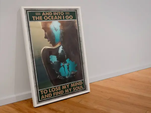And Into The Ocean I Go To Lose My Mind And Find My Soul Diver Motivational Poster Ocean Lover Art Print Canvas Art For Home Decor