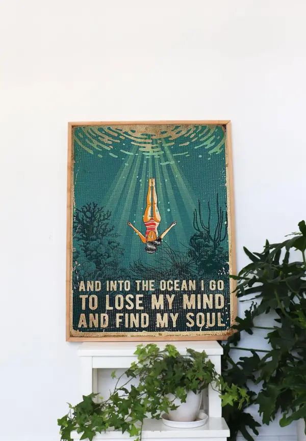 And Into The Ocean I Go To Lose My Mind And Find My Soul Poster Best Gift For Ocean Lovers Swimming Home Decor
