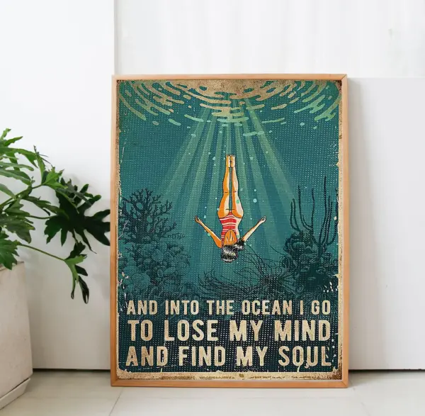 And Into The Ocean I Go To Lose My Mind And Find My Soul Poster Best Gift For Ocean Lovers Swimming Wall Art Best Decor For Your Home