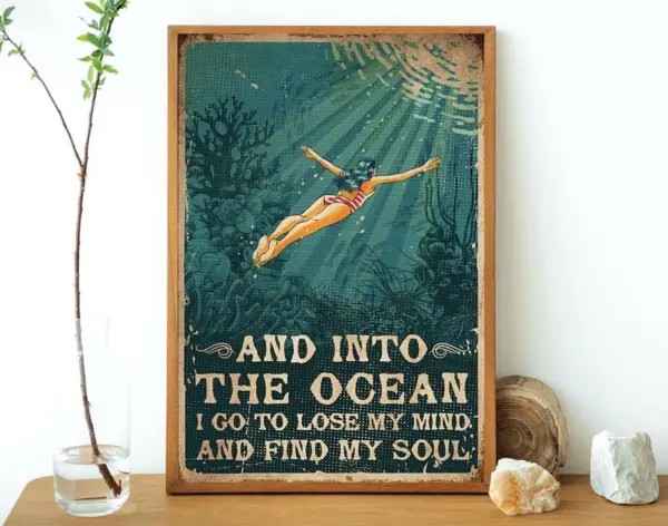 And Into The Ocean I Go To Lose My Mind And Find My Soul Poster Girl Swimming Summer Time Poster No Frame Poster