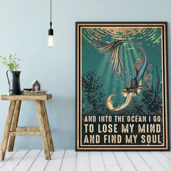 And Into The Ocean I Go To Lose My Mind And Find My Soul Poster Mermaid Art Print Stay Wild Moon Child Wall Art Best Gifts Ever