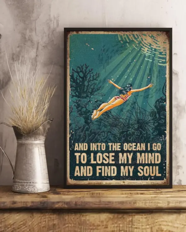 And Into The Ocean I Go To Lose Your Mind Find Your Soul Poster Swimming Ocean Girl Swimming Printable Wall Art Vertical Poster No Framed