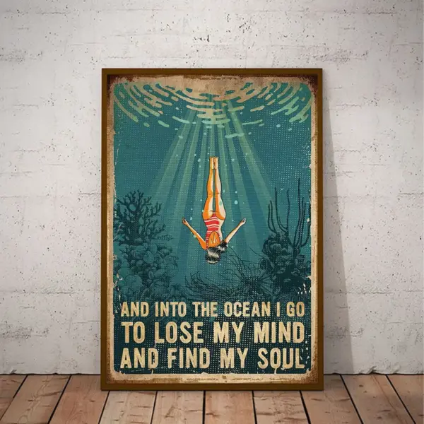 And Into The Ocean I Go To Lose Your Mind Find Your Soul Poster Swimming Ocean Poster Girl Swimming Poster Printable Wall Art No Frame
