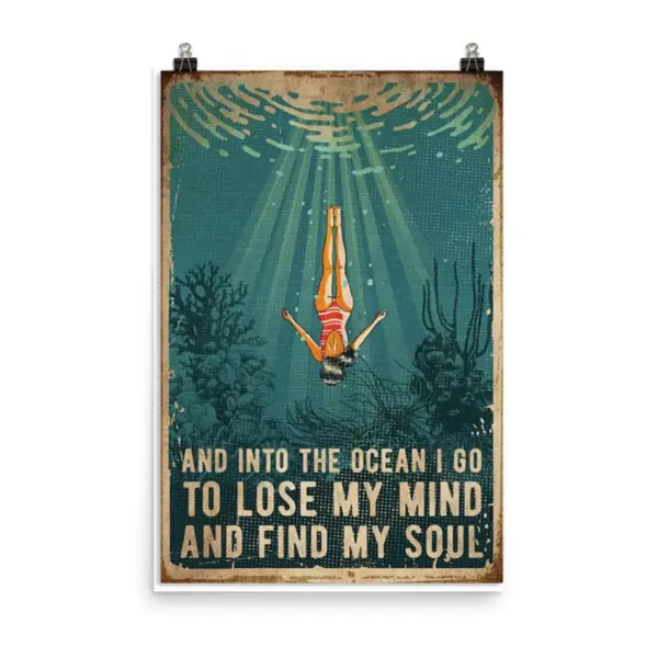 And Into The Ocean To Lose Mind And Find Soul Poster Girl Into The Ocean Art Poster No Frame