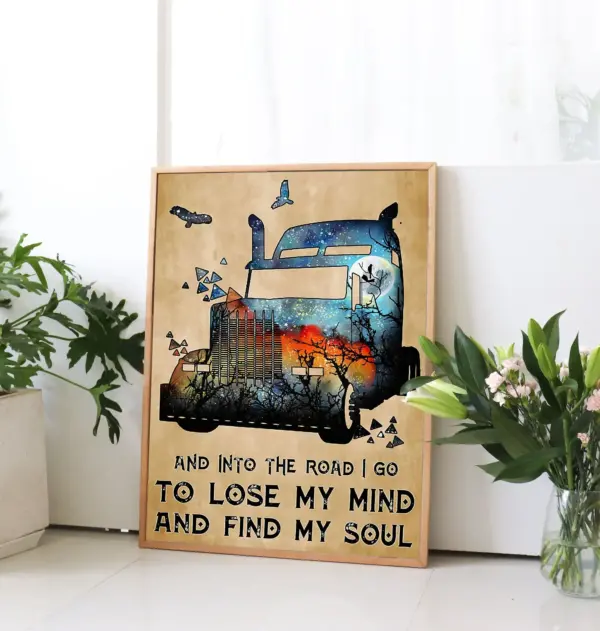 And Into The Road I Go To Lose My Mind And Find My Soul Poster Trucker Lifestyle Poster Trucker Knowledge Poster Trucker Home Decor