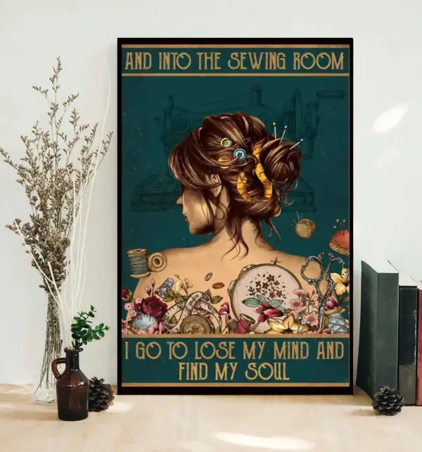 And Into The Sewing Room I Go To Lose My Mind And Find My Soul Vintage Poster