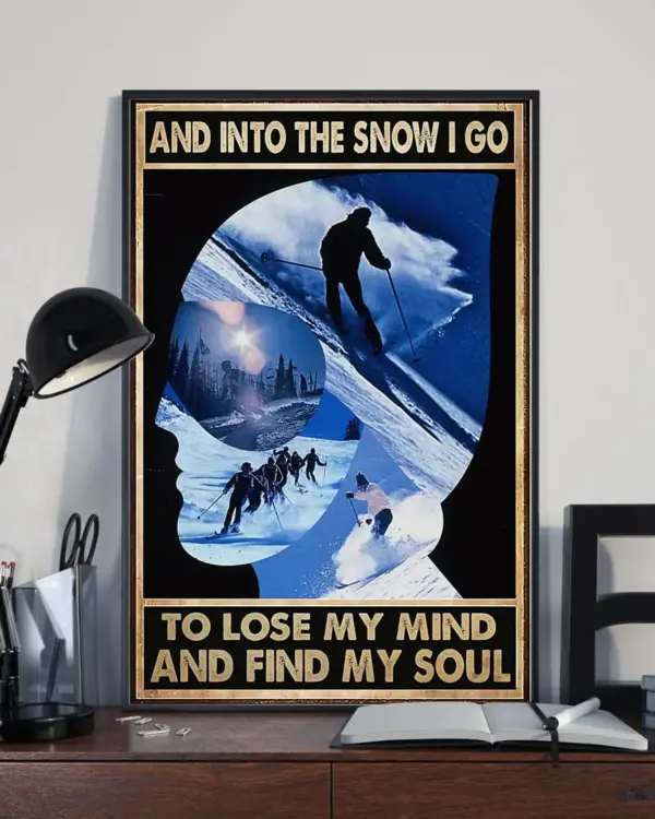 Capture the spirit of skiing with this inspiring wall art featuring a poetic quote about finding peace and passion on the snow-covered slopes.