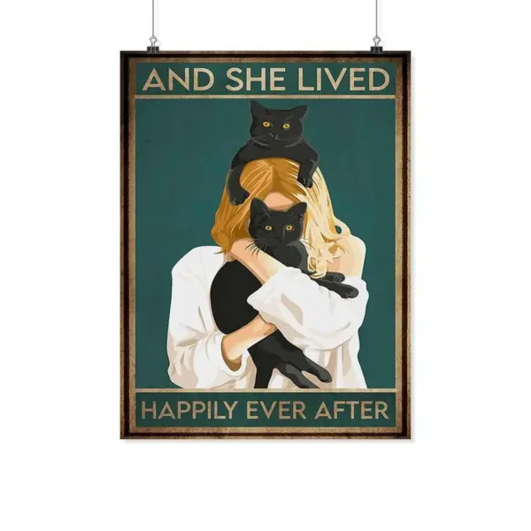 And She Lived Happily Ever After Cat Lovers Gift Black Cat Artwork Black Cat Poster No Frame Canvas With Frame
